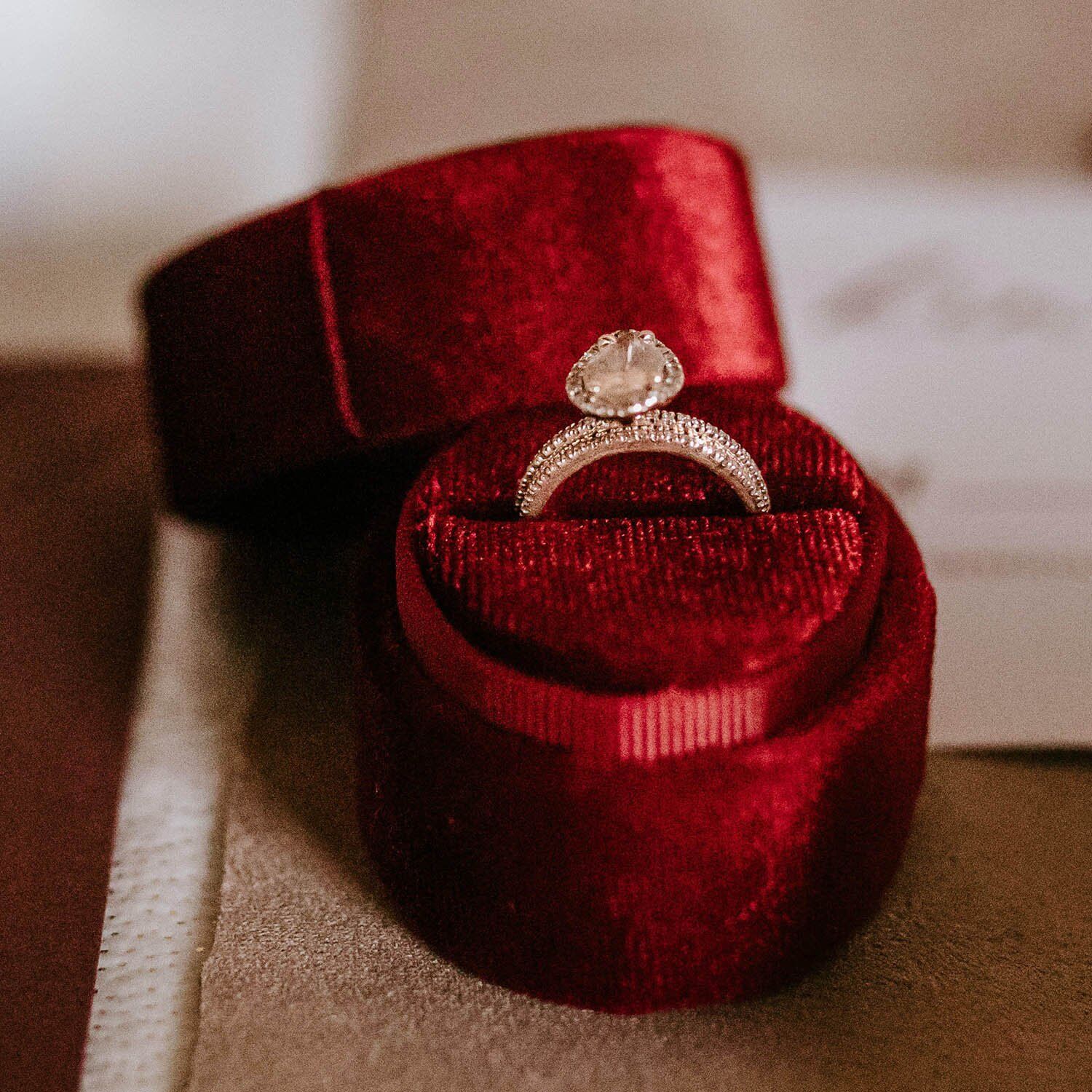 • What's Included: Round ring box with padded velvet interior