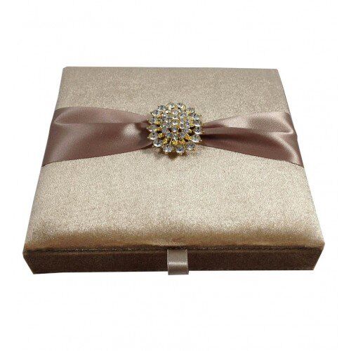 Velvet covered embellished hinged lid invitation box for wedding cards