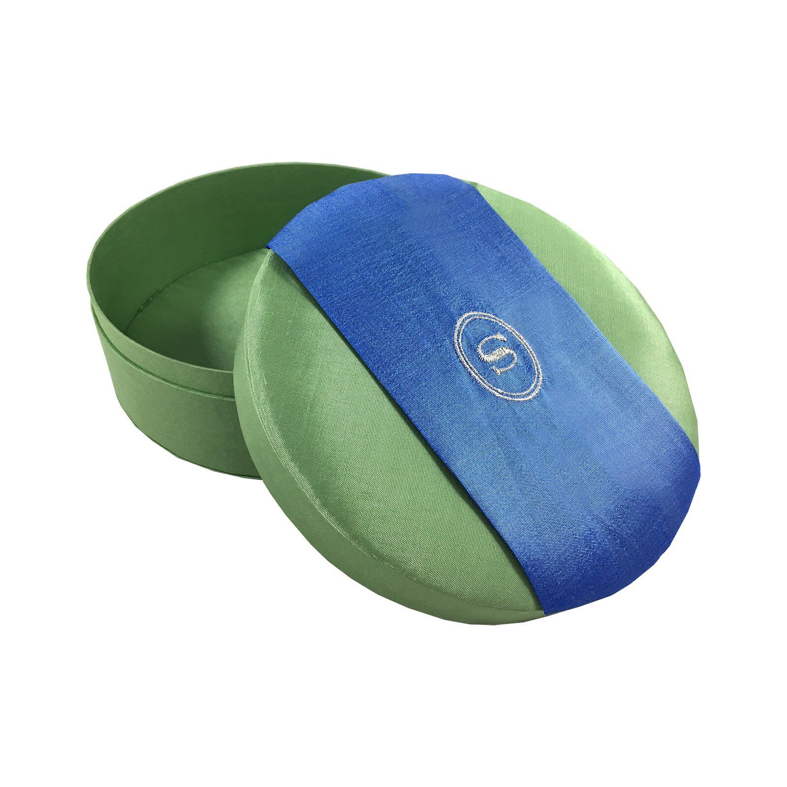 Verdant Azure Embroidered Circular Silk Box with Custom Logo