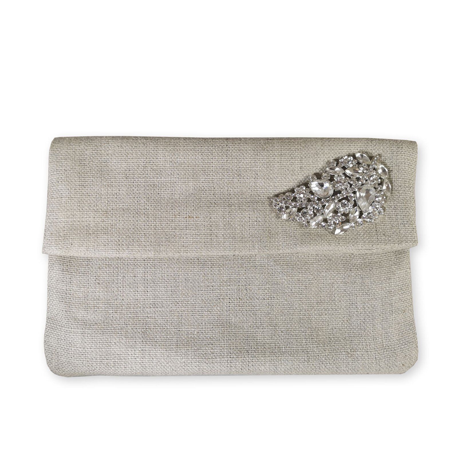 - What's Included: Envelope clutch with silver plated rhinestone brooch