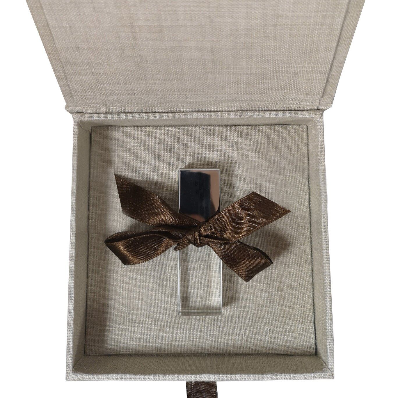 What's Included: One linen-covered box (4x4x1 inches). Optional glass USB holder available upon request. USB drive not included.