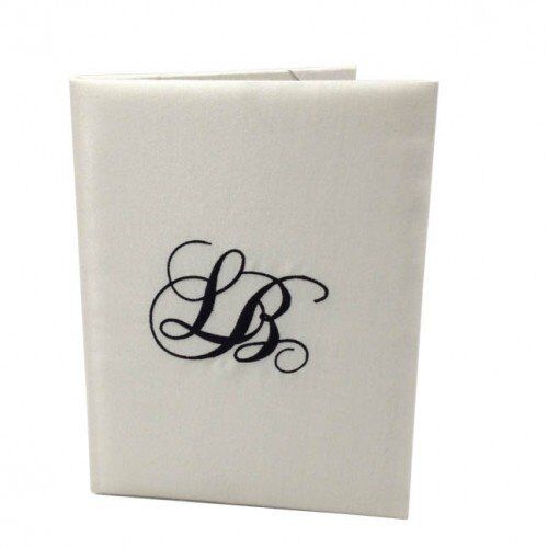 White Silk Monogram Embroidered Wedding Invitation Folio