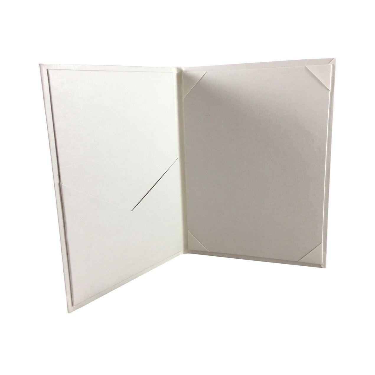 Classic Off-White Cardboard Pocket Folder for elegant wedding invitations, menu cards, and event stationery. Features a sturdy, luxury design with pocket holder on left and corner holder on right.