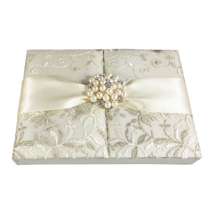 Pearly White Brooch Adorned Handcrafted Lace Keepsake Wedding Invitation Box