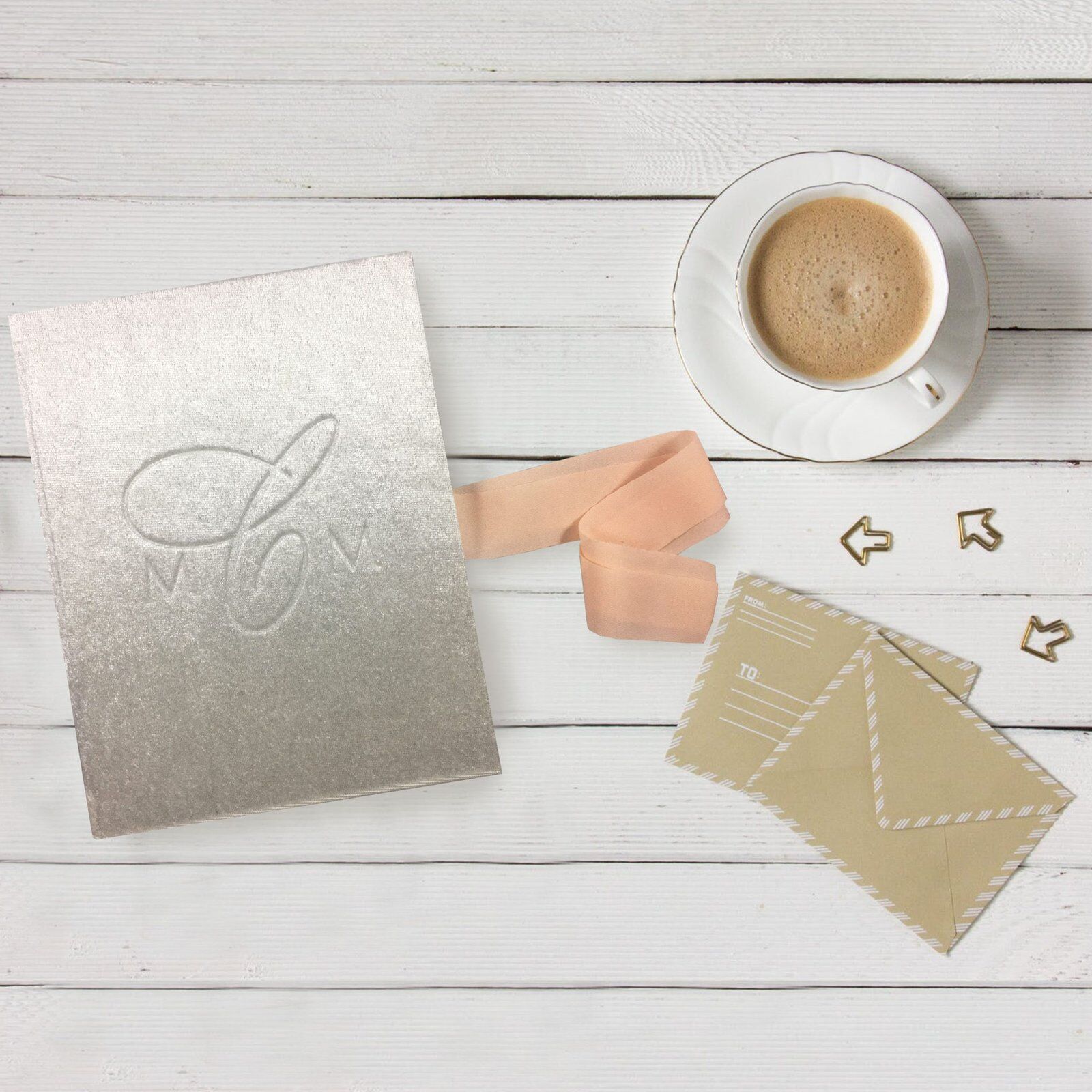 - What's Included: Velvet folder with pocket holder, card corner holder, handmade ribbon, personalized monogram embossing