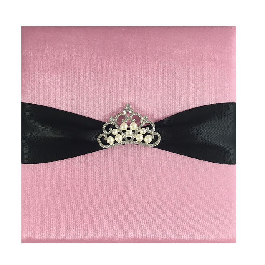 Pink Silk Royal Invitation Scroll with Noir Sash and Pearl Crown