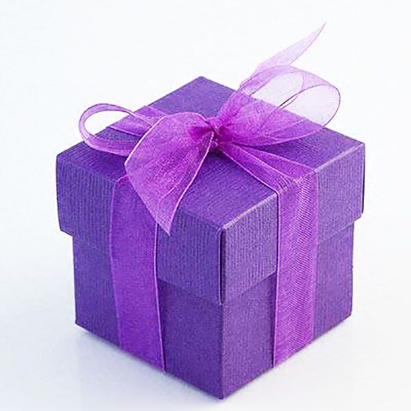 - Purple favor box with removable lid (2.5×2.5×2.5)
