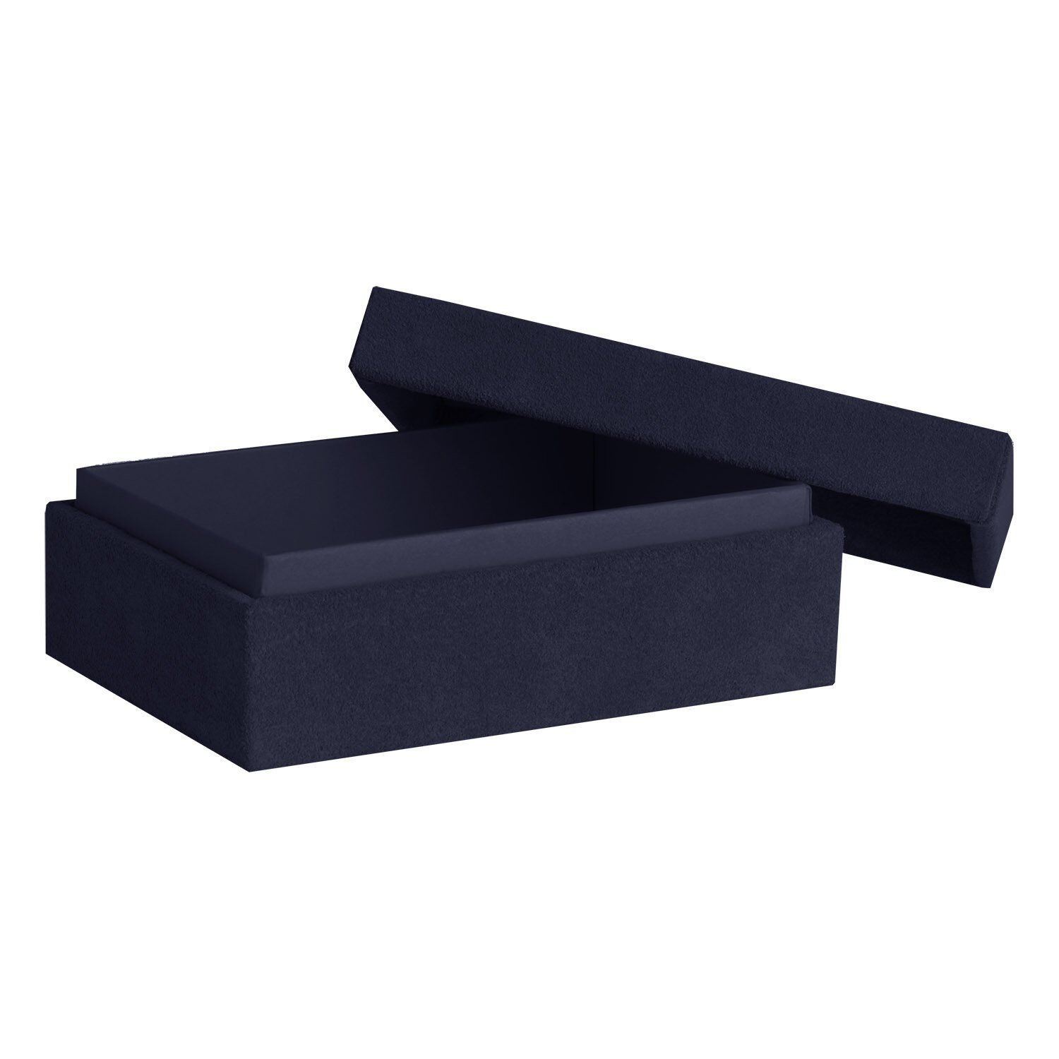 Classic lidded suede box in navy blue with 100% paper lining for jewelry storage, gift or product display